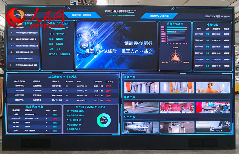 百川机器人共享工厂生产进度展示屏。人民网记者 朱延生摄