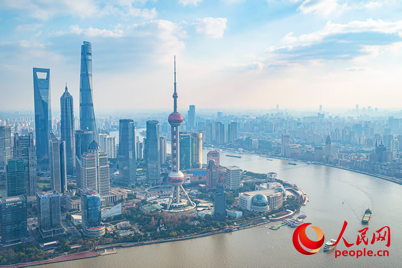 从浦西第一高楼拍摄陆家嘴风光。人民网记者 王初摄