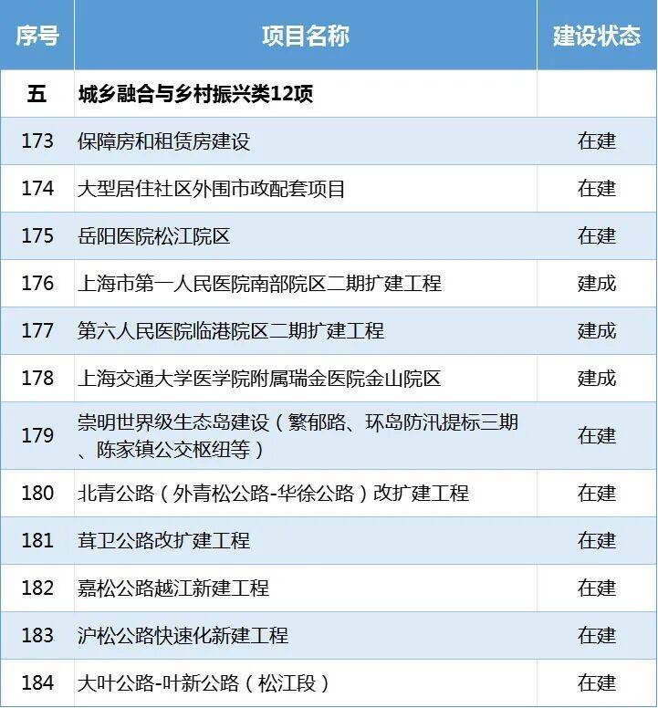 在建项目9项:岳阳医院松江院区、崇明世界级生态岛建设、北青公路(外青松公路-华徐公路)改扩建工程等。